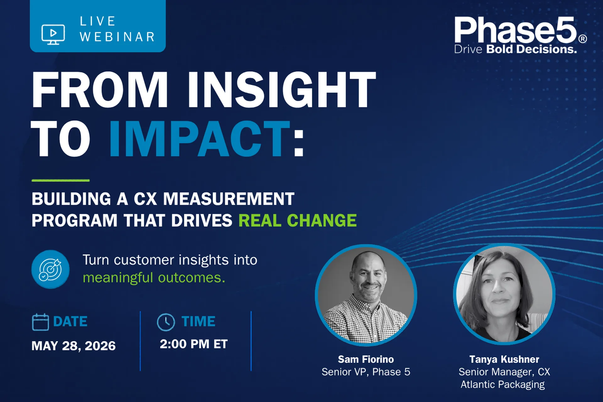 Join Phase 5’s Sam Fiorino and Tanya Kushner from Atlantic Packaging for a candid conversation on what it takes to build a CX measurement program that actually moves the needle.